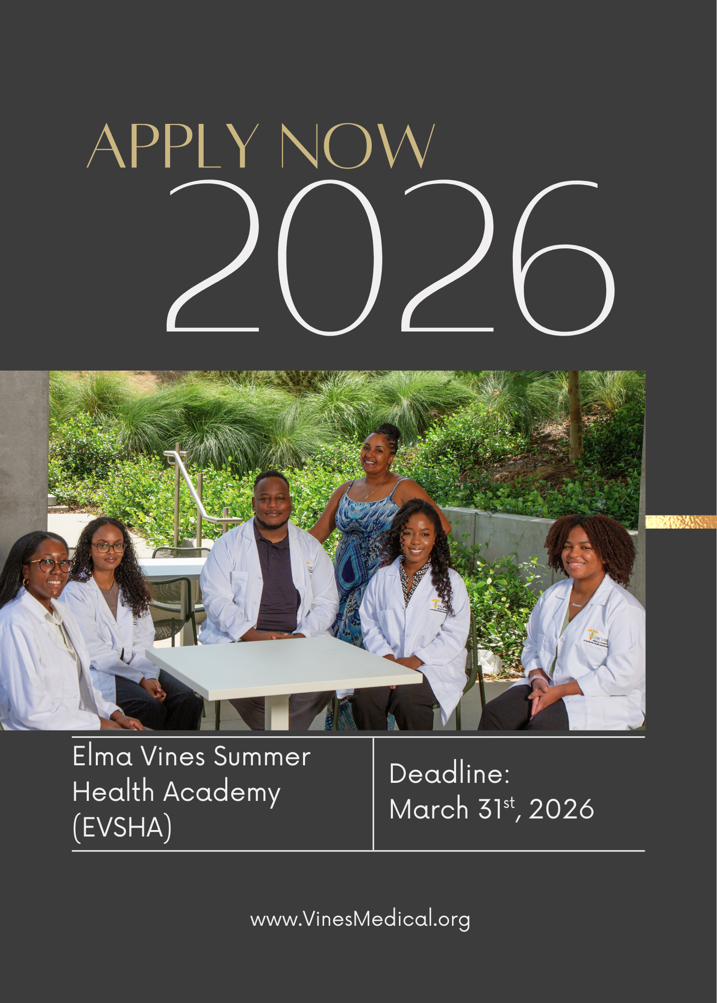 Applications are now being accepted for the 2026 EVSHAThe Elma Vines Summer Health Academy (EVSHA) has been mentoring and providing “doctor-shadowing” opportunities for the past 23 years to College Students. We are currently open for registration for the 23rd annual EVSHA for 2026. EVSHA is a 5-week paid program which allows college students to shadow professionals in the offices of surgeons, general practitioners, pediatricians, etc. Students get the unique opportunity of shadowing the various physicians, work with office staff in addition to giving weekly presentations on their findings, creating quite the memorable experiences. 2026 Program Details: